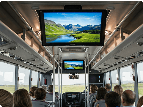 Enjoy onboard entertainment with flat-screen TVs, keeping you entertained on the go.
